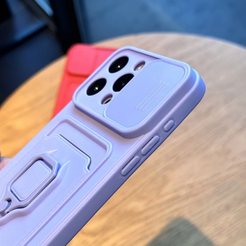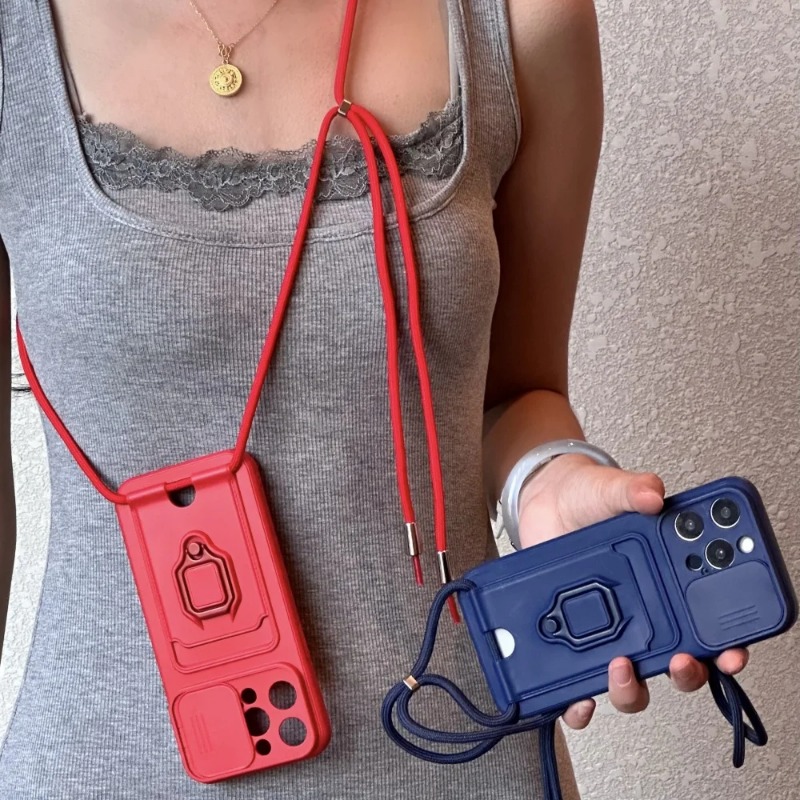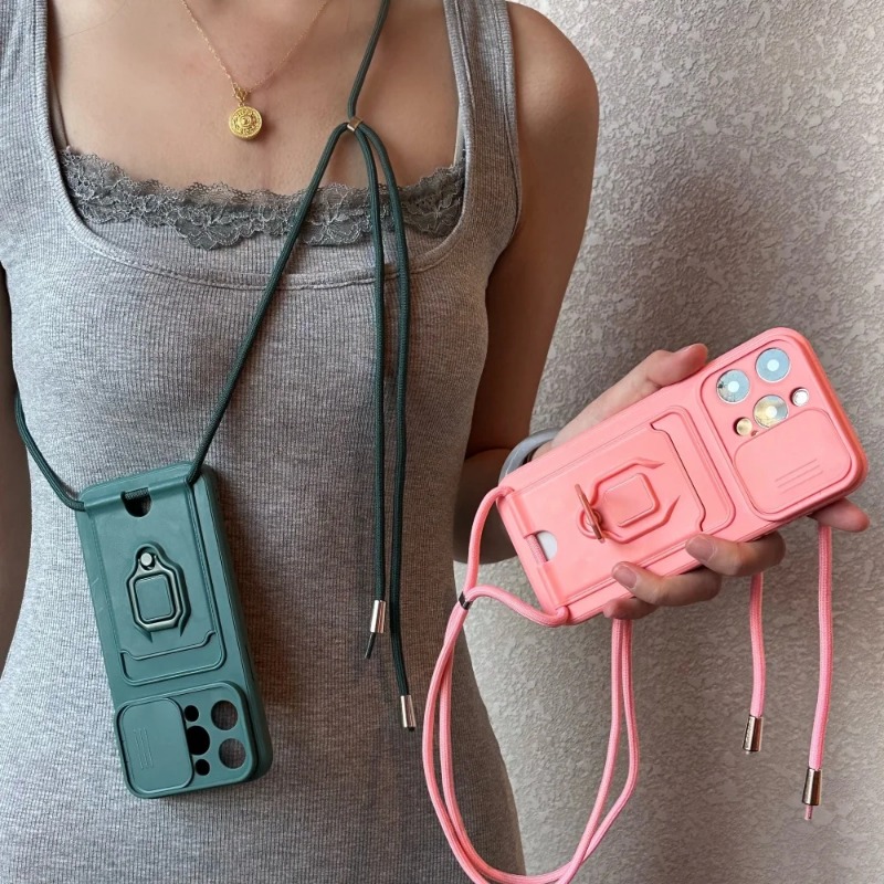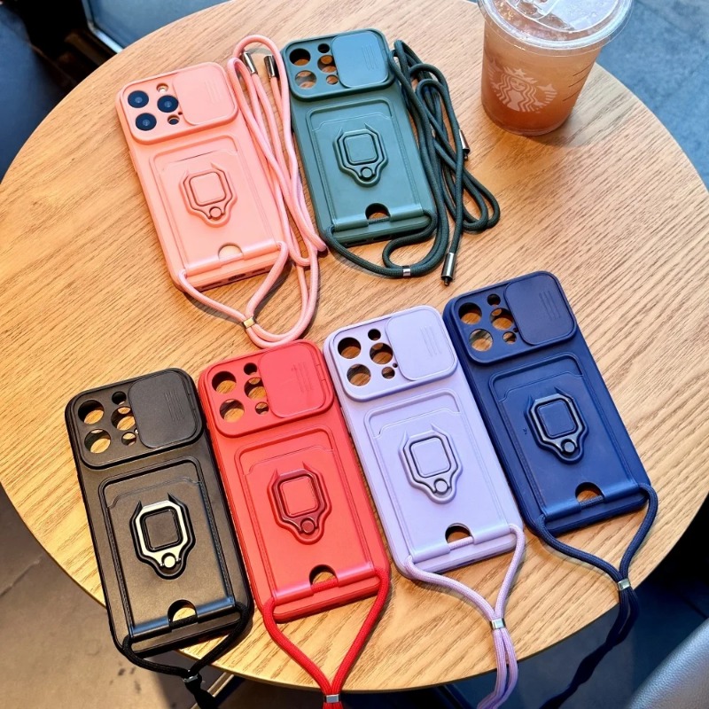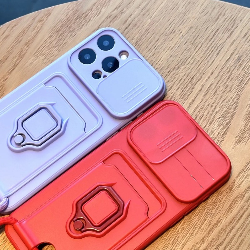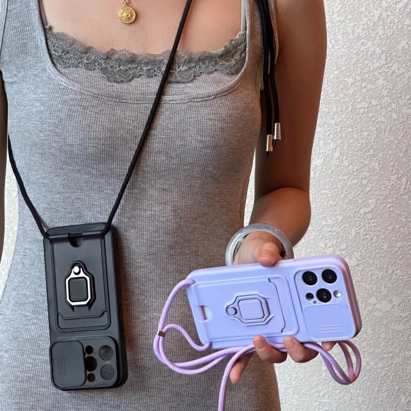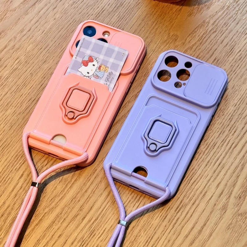Slide Camera Protection Case with Lanyard Ring Satnd for iPhone
