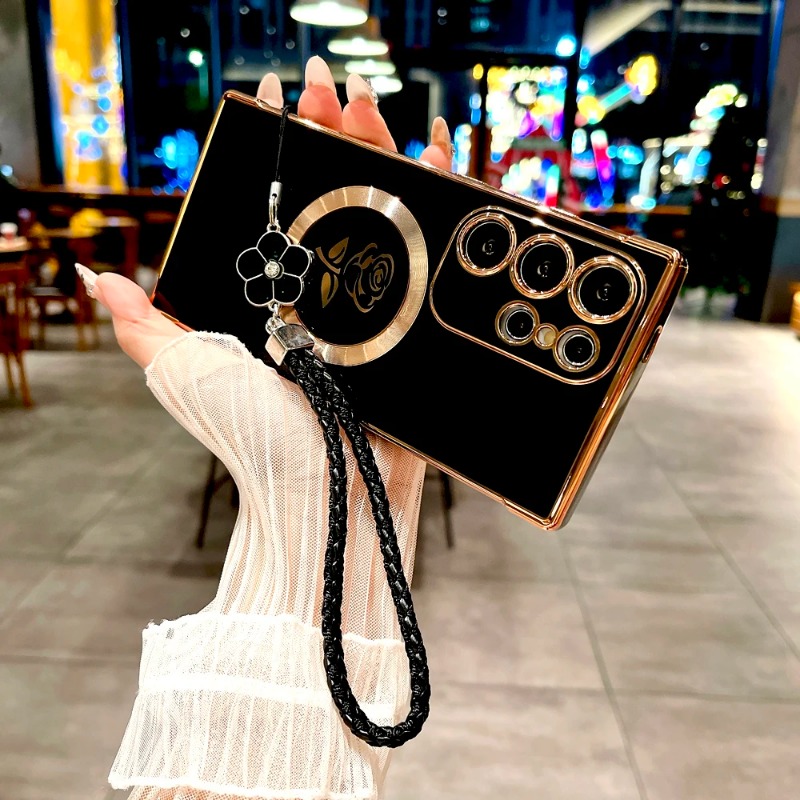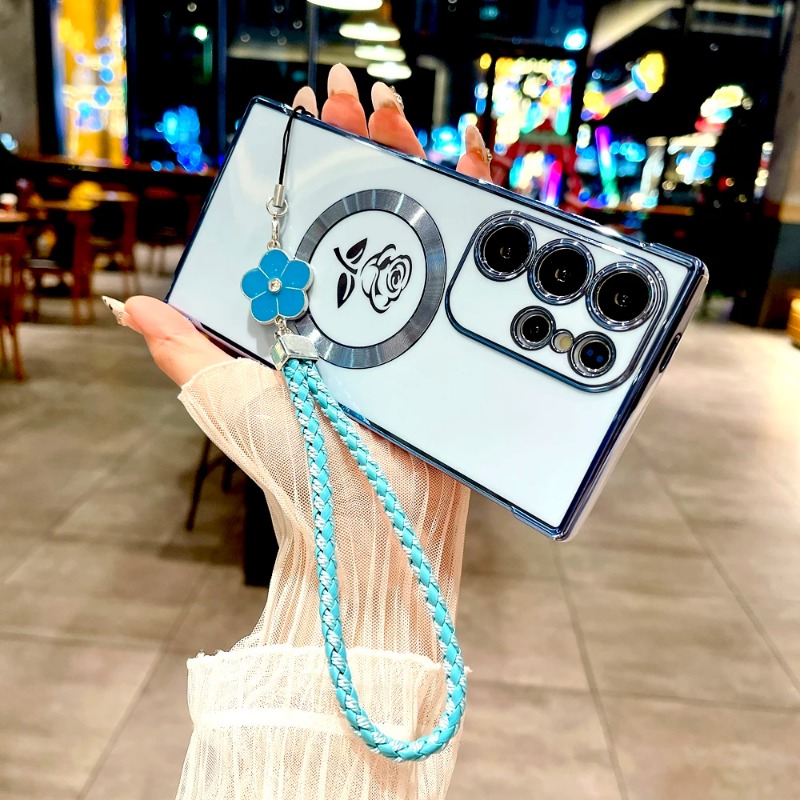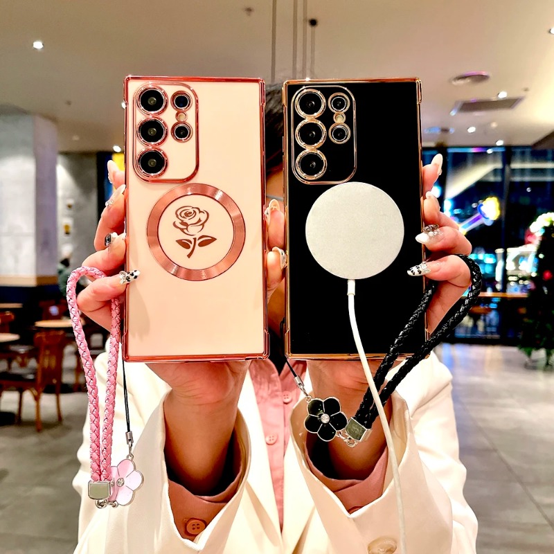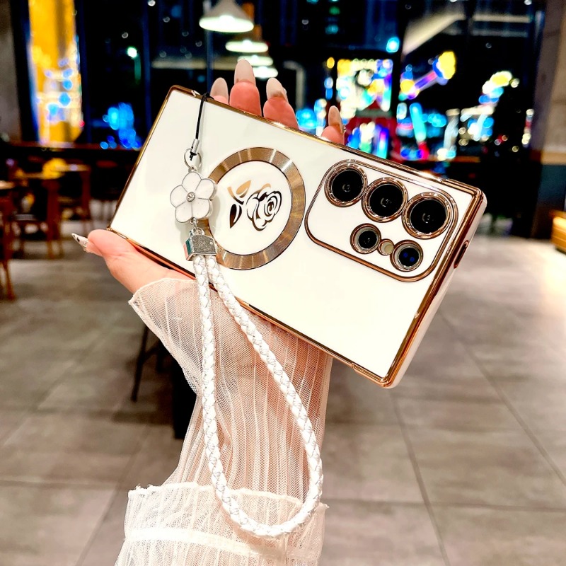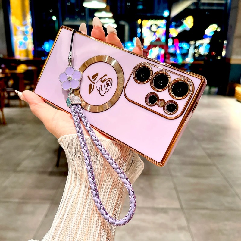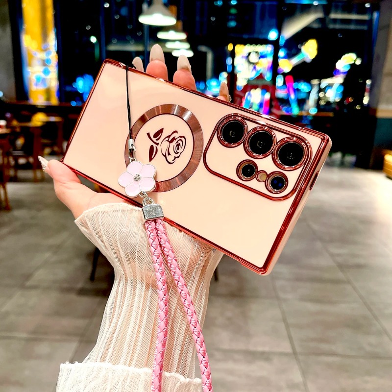 Plating Rose Magnetic Soft Case with Lanyard For Samsung